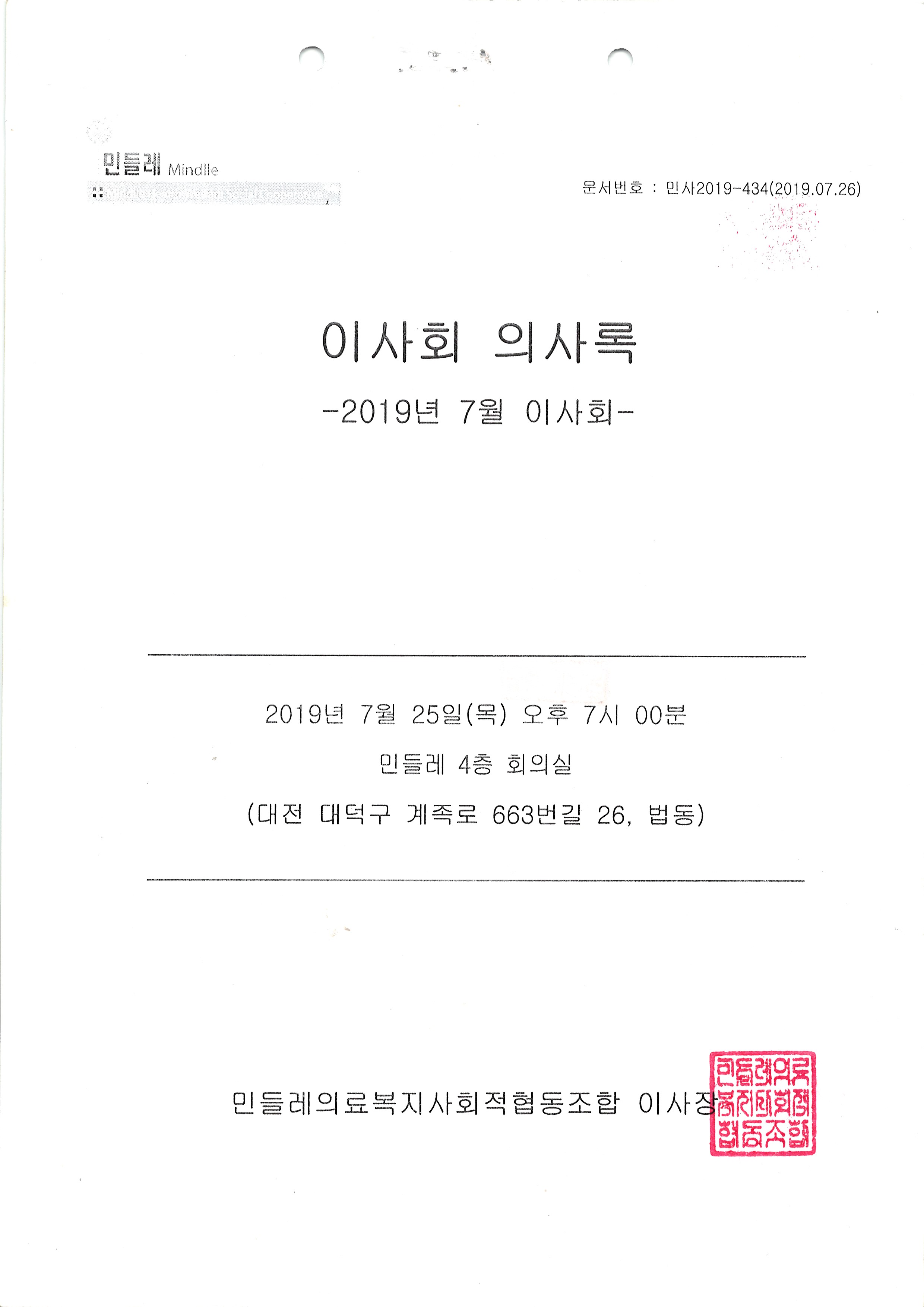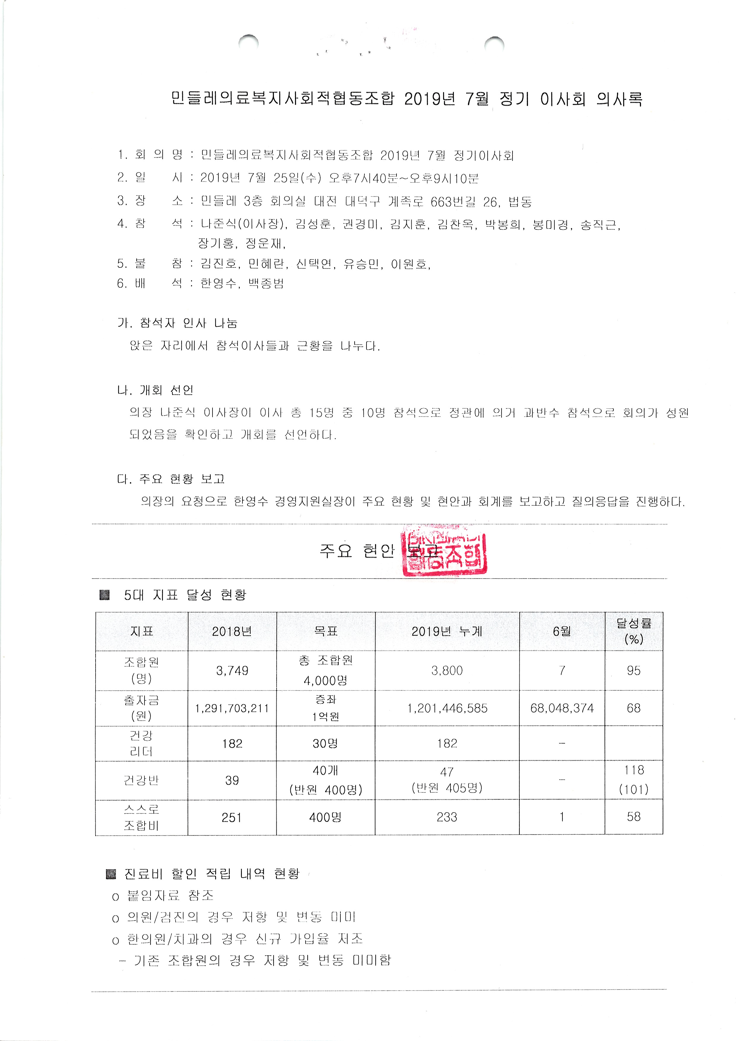 [2019-07] 정기이사회 결과보고