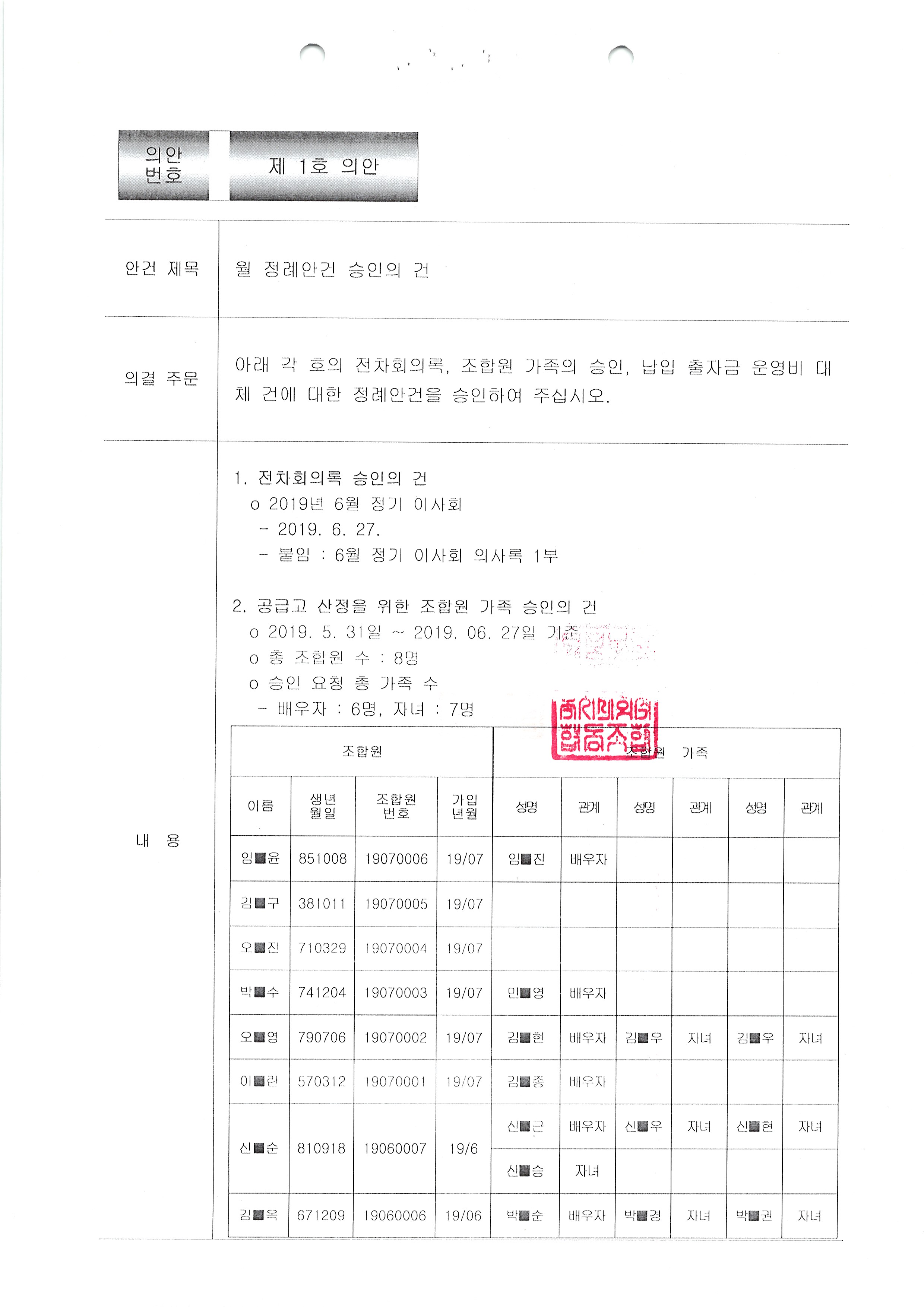 [2019-06] 정기이사회 결과보고
