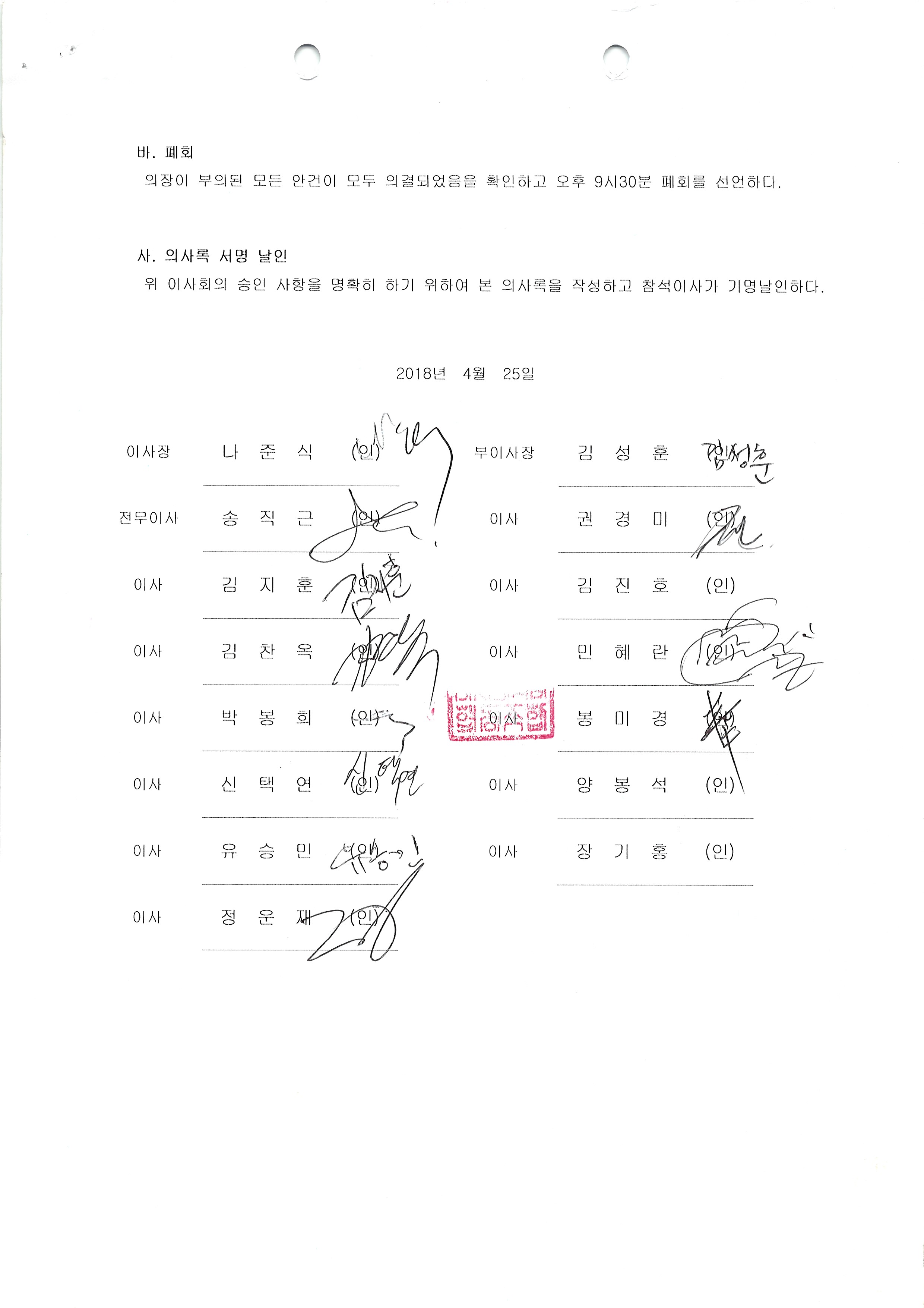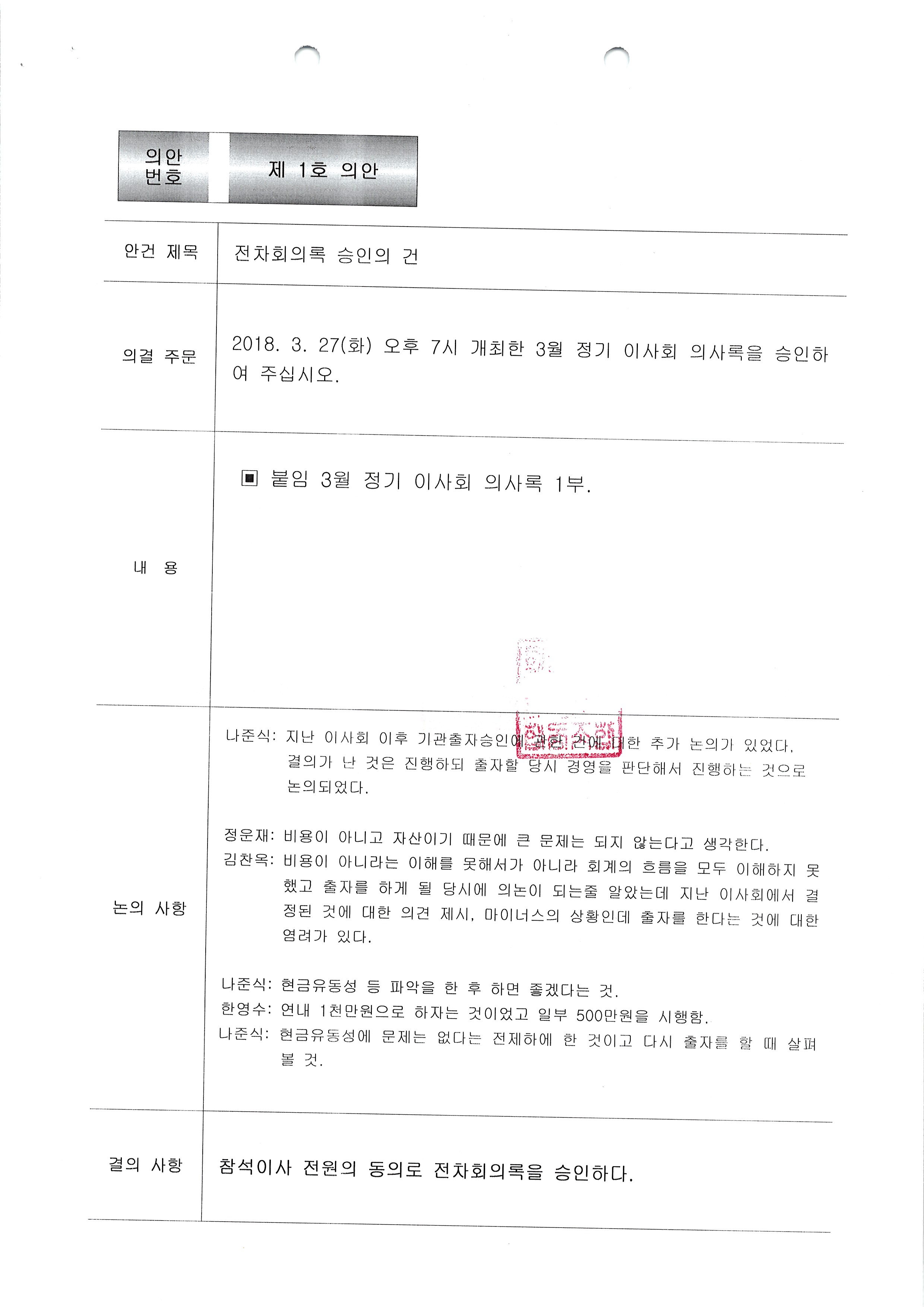[2018-04] 정기이사회 결과보고 상세내용