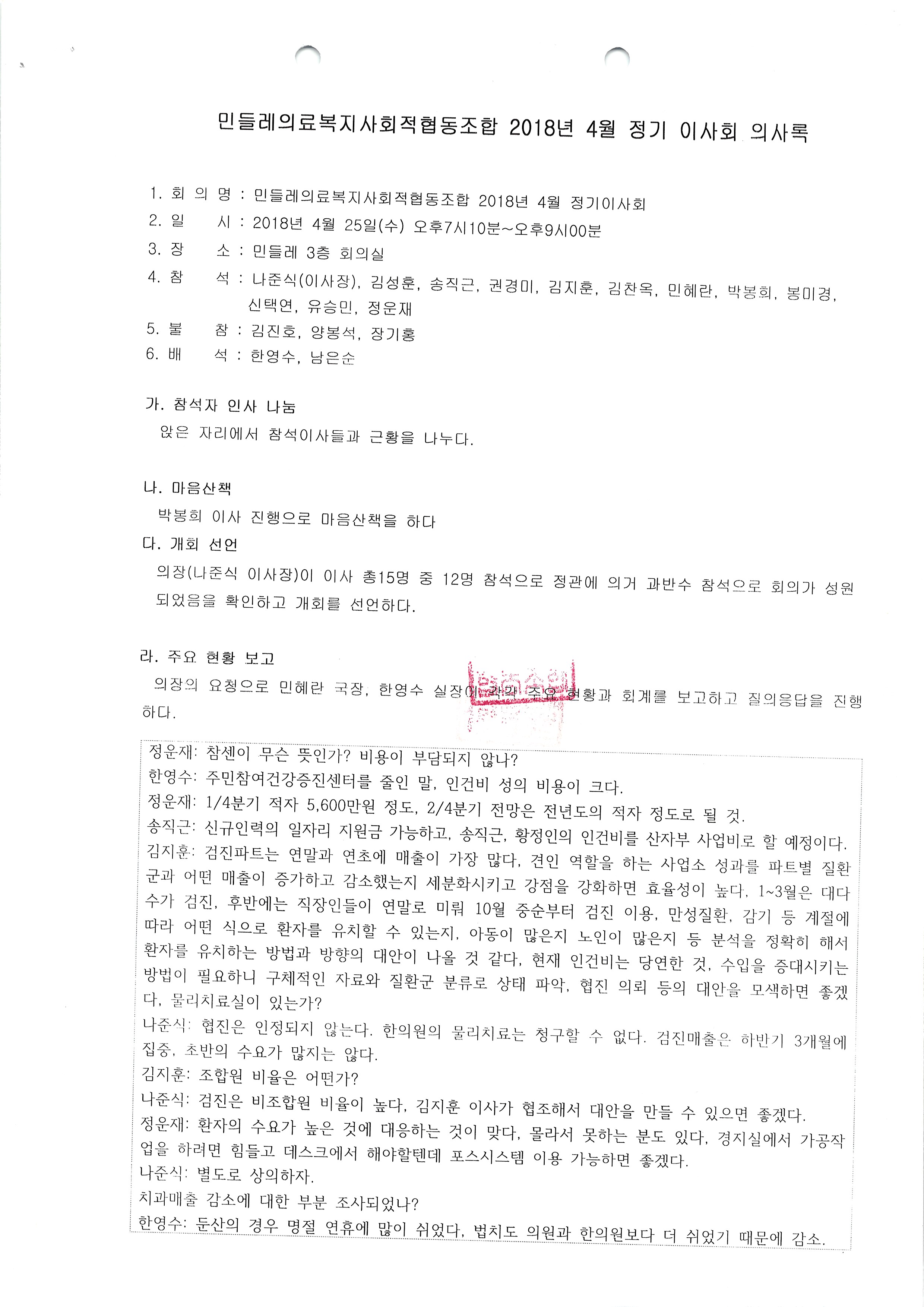 [2018-04] 정기이사회 결과보고