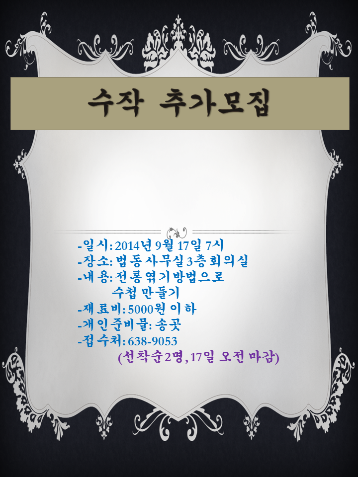 수작 추가모집!! 상세내용