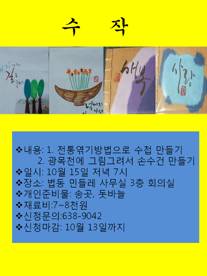 수작(수첩,손수건 만들기) 신청하세요^^