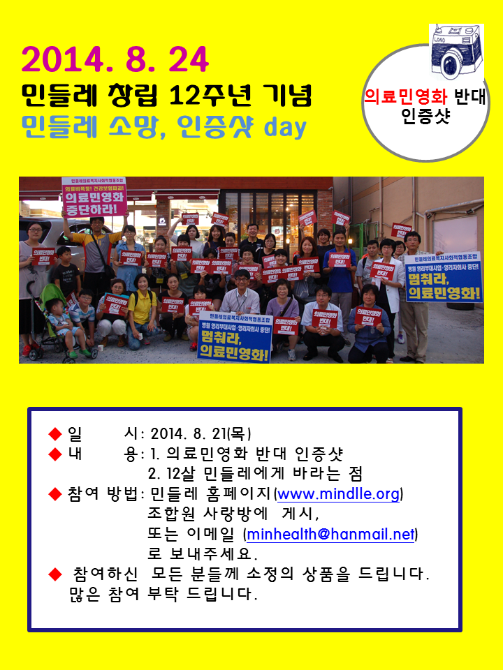 민들레 창립12주년 소망,인증샷 day 참여하세요^^ 상세내용