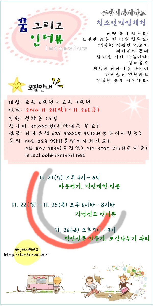 제목 [품앗이사회학교] 청소년 직업체험 '꿈 그리고' 11월 과정!