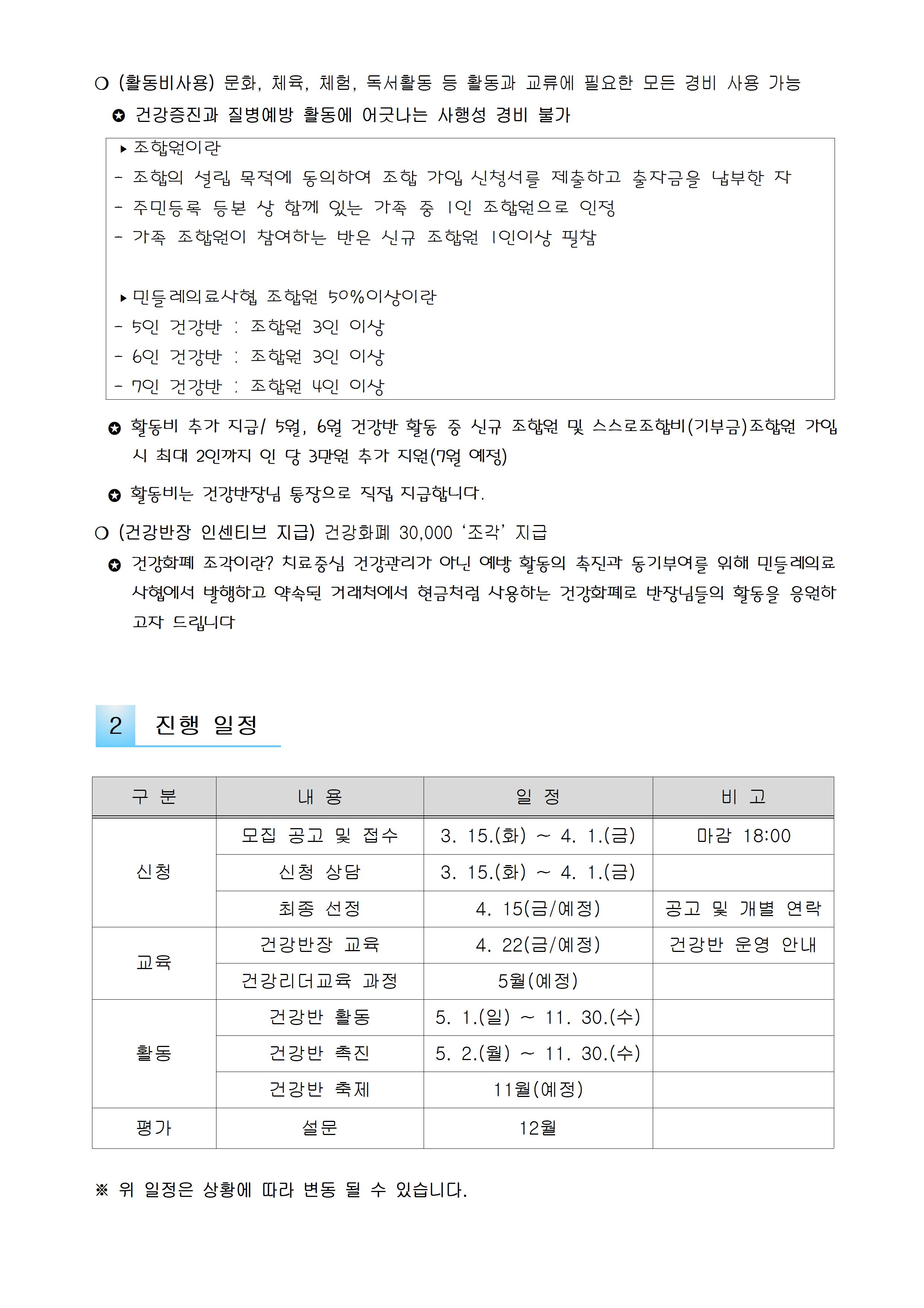 2022년 민들레의료복지사회적협동조합 '건강반' 모집 상세내용