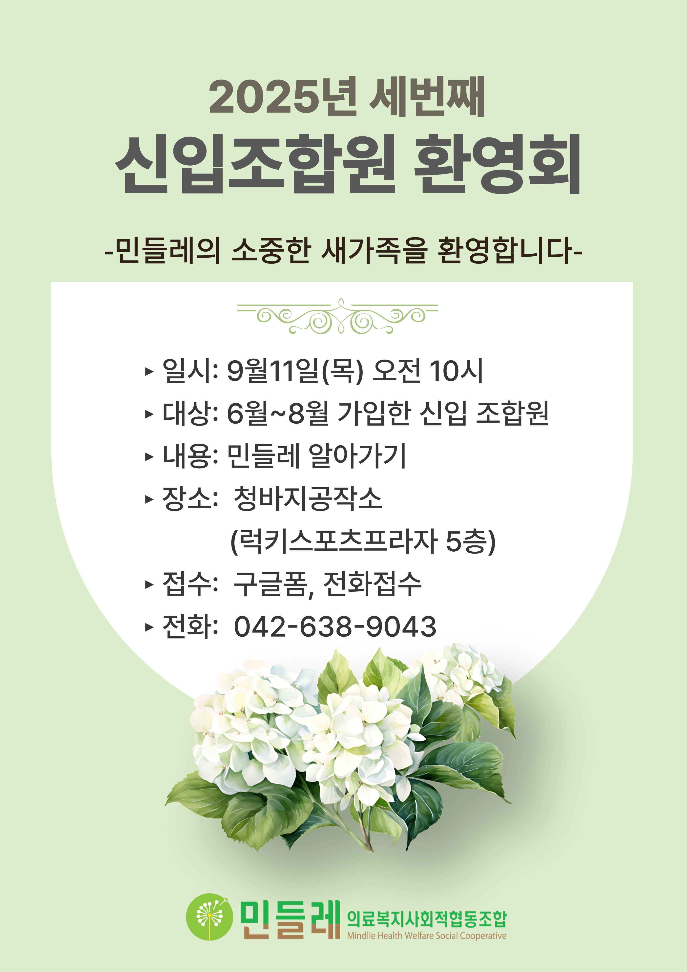 | 작성자 | 민들레의료복지사회적협동조합(mindlle) | 작성일 | 2025-09-01 | 조회수 | 4777 |