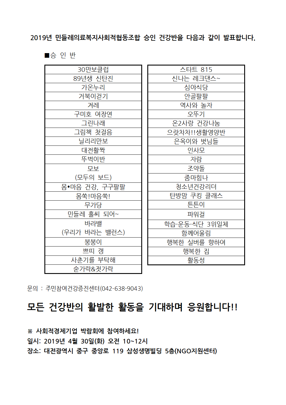 | 제목 | 승인된 건강반을 발표합니다. |