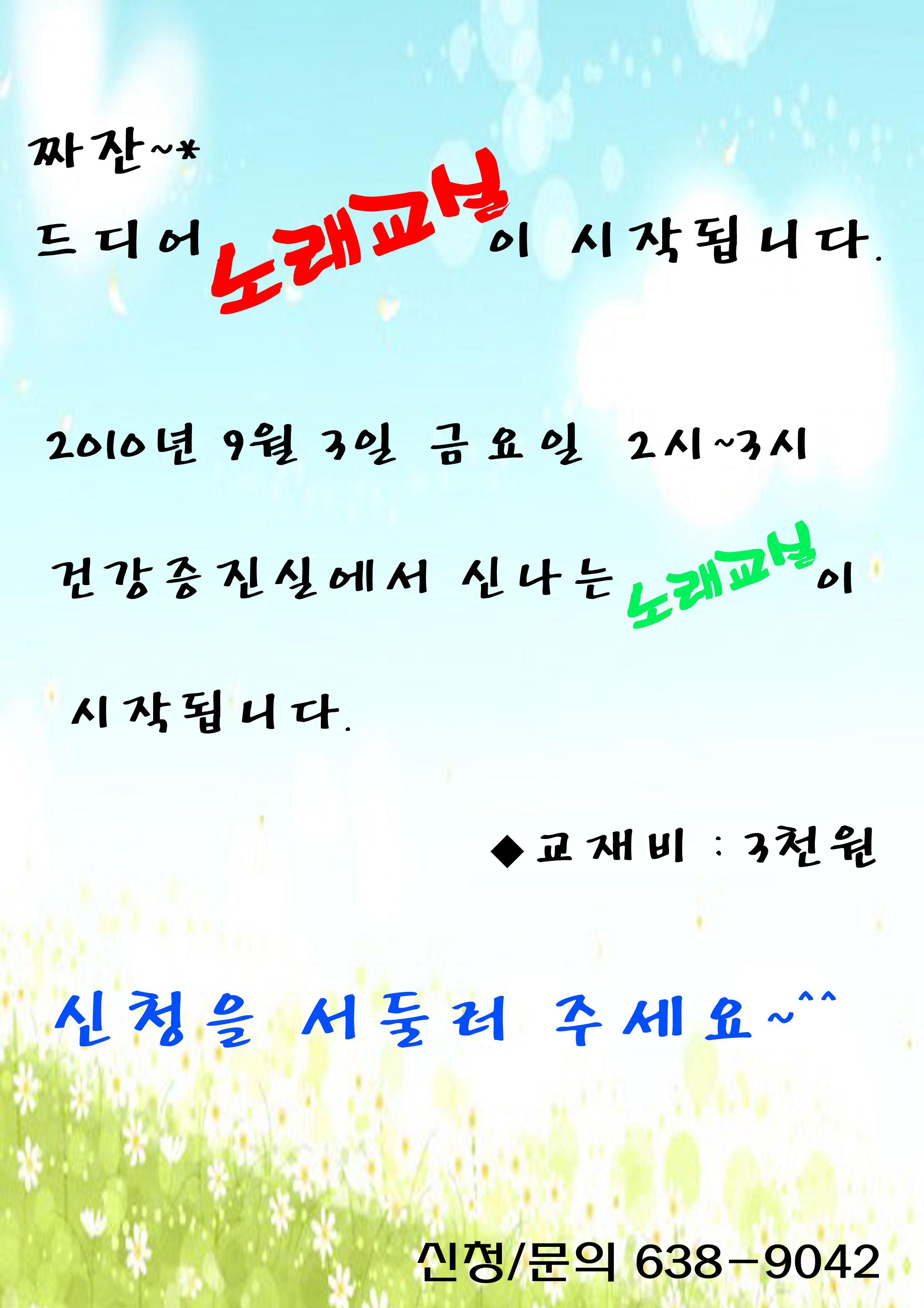 | 제목 | 노래교실을 시작합니다. |