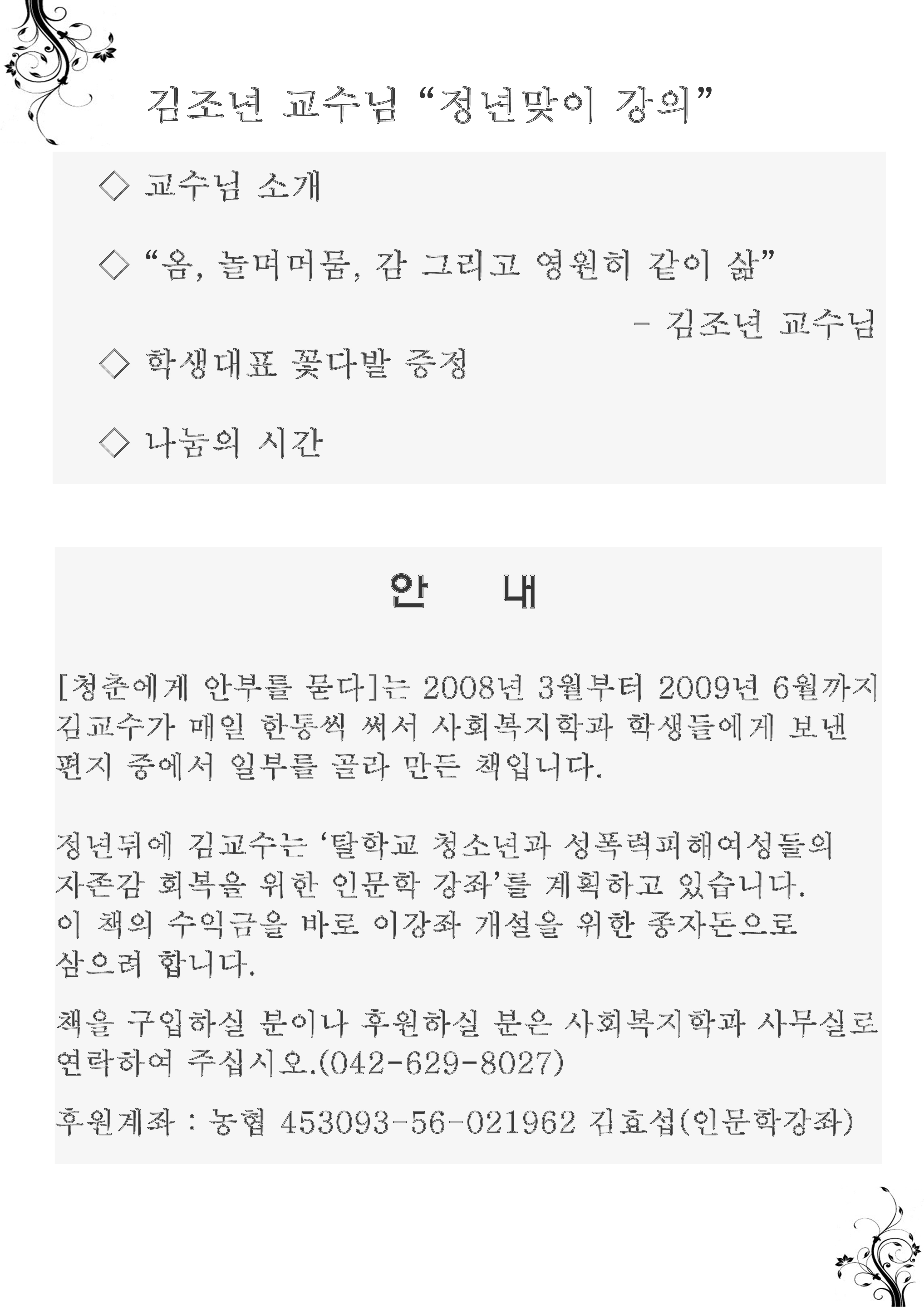 [민들레 소식] 김조년이사장 정년강의