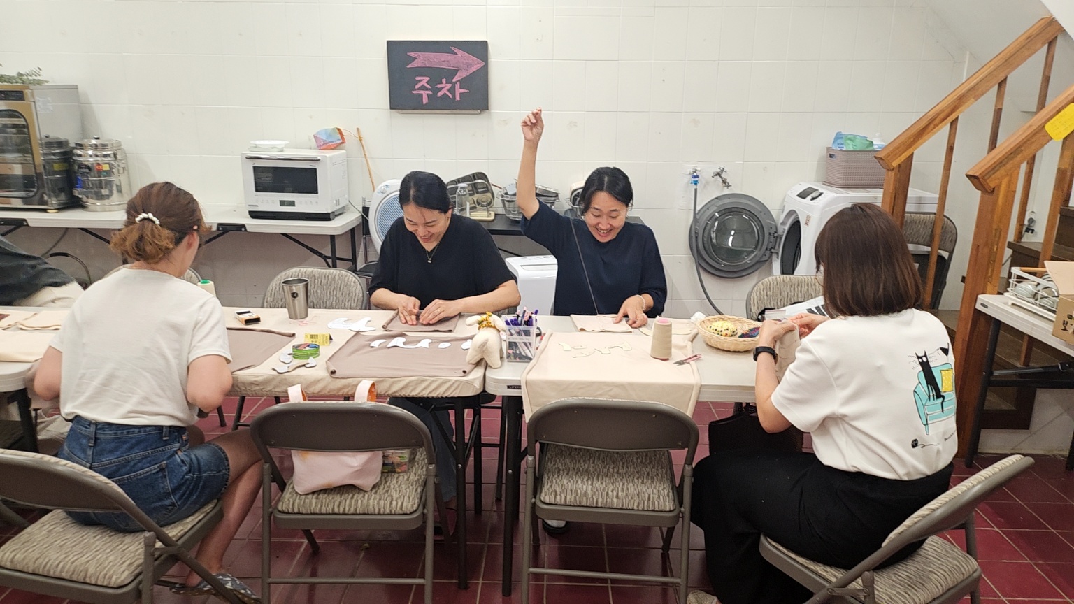 무엇보다 아이들끼리 모여 있으니 밥도 잘먹고, 놀이도 잘해서 엄마들이 작업하기가 수월합니다. 지난번에 이어서 바느질을 시작합니다. 천과 천이 이어지는 부분을 상상하고 재단하는게 쉽지 않습니다. 누군가는 척척 진도를 나가고 누군가는 어떻게 하는거냐고!!! 질문을 백번을 합니다. 백번의 질문을 모두 상냥하게 대답해주는 보살같은 어머님이 계셔서 오늘 모임도 평안하게 잘 진행되었습니다.